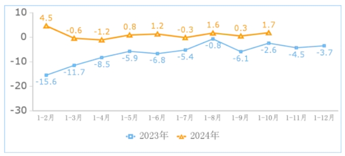 图4 2024年1-10月分地区互联网业务收入增长情况