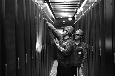 6月14日,工作人员在东数西算(贵州)智算中心内巡检。