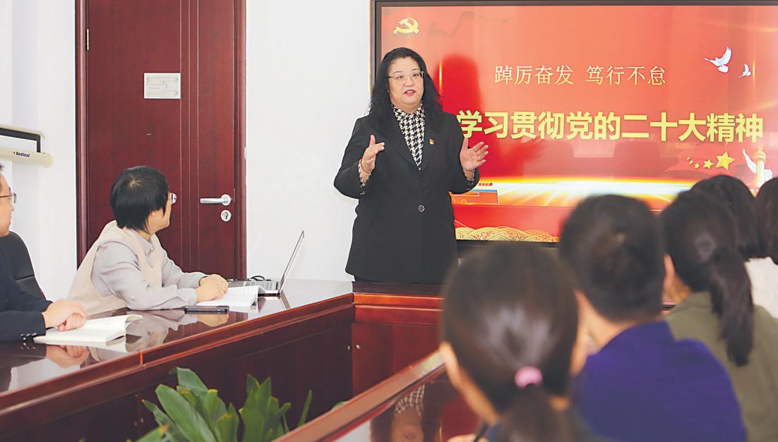 ③党的二十大代表,中国联通智慧客服北方一中心党支部书记、主任陈静与党员面对面宣讲党的二十大精神。