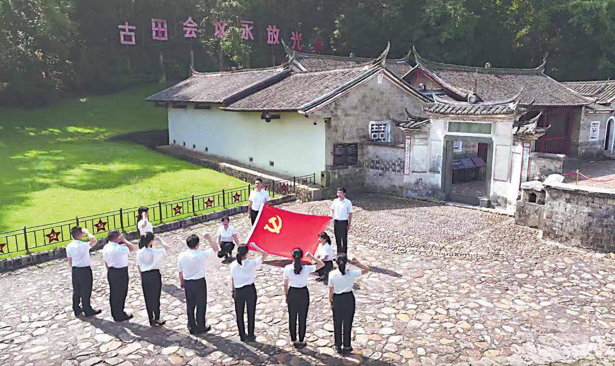 ⑤福建联通党员在古田会议旧址前重温入党誓词。
