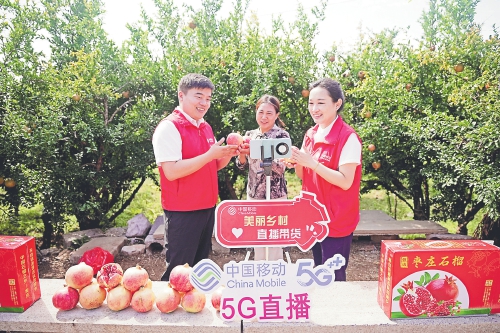 秋风送爽,榴果飘香,山东枣庄峄城冠世榴园迎来了石榴丰收的季节。山东移动峄城分公司充分发挥自身优势,打造石榴“产业大脑”、5G+石榴大数据平台、石榴精品种植园等项目,助力石榴产业融合、数智乡村、文旅服务等应用的全面落地。在丰收季,志愿者更是化身果农的5G网络助手,通过5G直播的形式,搭建起便捷高效的线上销售平台,引导果农将手机变成“新农具”,利用“小屏幕”打开“大市场”,有效提高了他们的收入和生活水平。