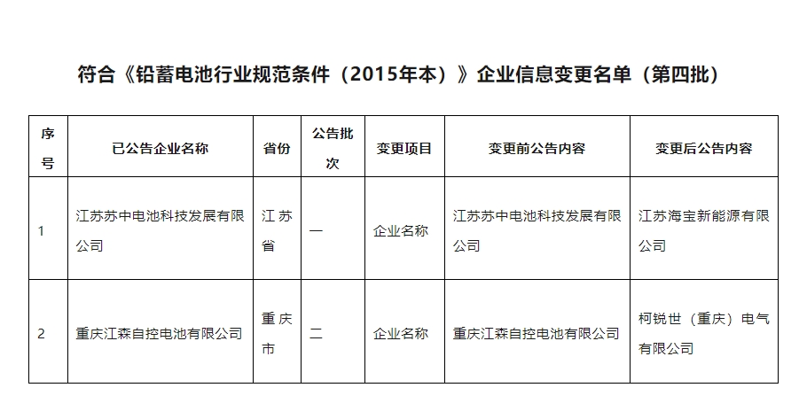 3.符合《铅蓄电池行业规范条件(2015年本)》企业信息变更名单(第四批)