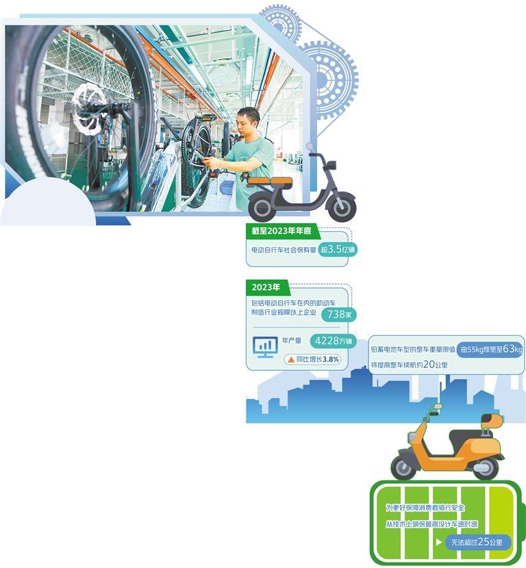 我国是全球电动自行车生产、消费大国,截至2023年年底,电动自行车社会保有量超3.5亿辆。